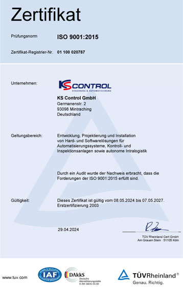 Zertifikat ISO 9001:2015